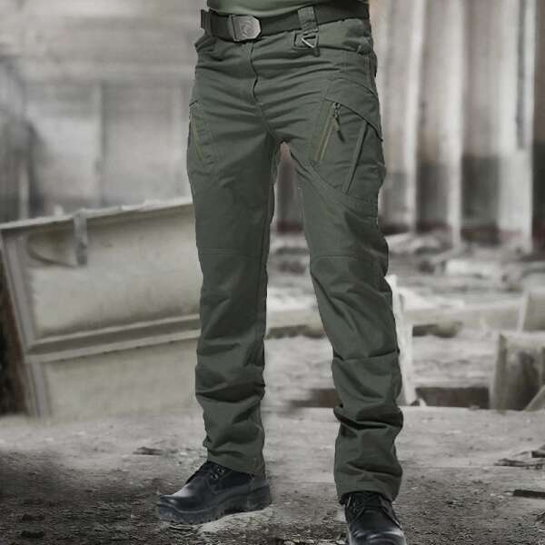 Pantalones con múltiples bolsillos para guardar fácilmente el teléfono móvil, herramientas, billetera, llaves y otros artículos personales. Los pantalones se pueden usar para trabajar, cazar, hacer senderismo y acampar.